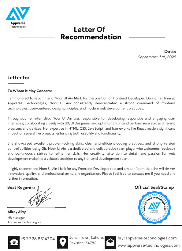 View my official profile: appverse-technologies.com/noorulain-malik/